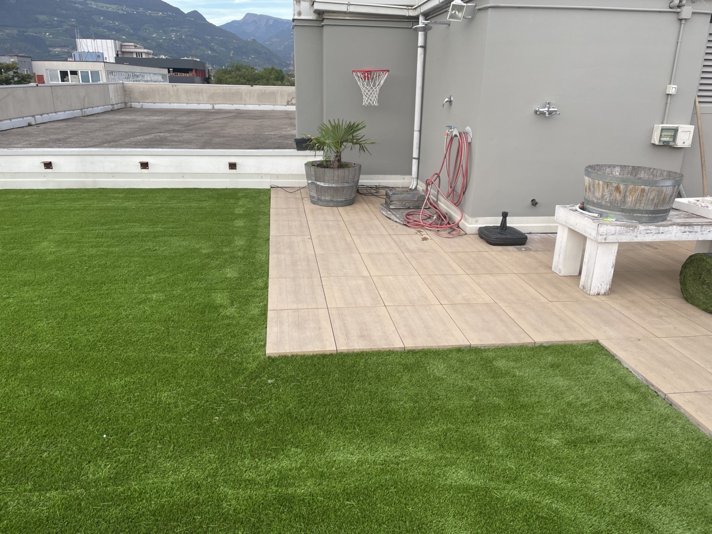 Artificial lawn on rooftop terrace in Bolzano